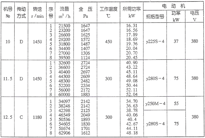 风机制成单吸入式,可制成顺旋或逆旋两种形式。从传动组端正