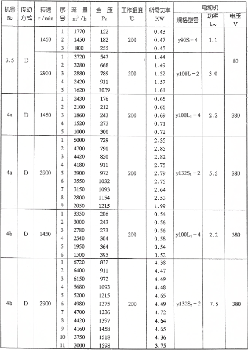 风机制成单吸入式,可制成顺旋或逆旋两种形式。从传动组端正
