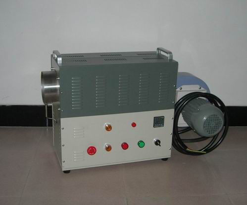 通电后,鼓风机把空气吹送到加热器里,令空气从螺旋状的电热丝内、外侧均匀通过,电热丝通电后产生的热量与通过的冷空气进行热交换,从而使用出风口的风温升高。出风口处的K型热电偶及时将探测到的出风温度反馈到温控仪,仪表根据设定的温度监测着工作的实际温度,并将有关信息传递回固态继电器进而控制加热器是否工作。同时,通风机可利用风量调节器(变频器、风门)调节吹送空气的风量大小,由此,实现工作温度、风量的调控。另外,热风机还对通风机进风口、电机设置了超温保护回路及对总电路设置了急刹挚开关,更进一步完善对设备的保护。