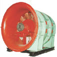 1、用途 该产品是专门为新、旧煤矿设计制造的矿井轴流通风机,新建矿井适合选用2K56-1型各机号通风机,旧矿井适合选用2K56-2或2K56-3型各机号通风机。本产品除可作为煤矿主通风机外,也适应于金属矿通风换气、隧道通风及国民经济其它部门。 2、结构特点 2K56系列产品是双级叶轮轴流式矿井主通风机。叶片材质选用铸造铝合金,有足够的强度和韧性,叶片型线为机翼扭曲式,安装角度在20°~50°之间无级可调。该系列产品的中、后异叶为板型扭曲式,不可调解。当需要反风时可使通风机直接反转,不需要调解风机的任何装置。为缩短通风机的正反风交替时间,通风机上配有刹车装置。该系列产品选用滚动轴承,用油脂润滑、轴承上装有铂热电阻温度计及联接二次仪表,可作遥测。通风机与电动机之间用调心联轴器通过传动轴直联。另 外,为了跟踪监测风机的振动情况,轴承座上配有测振用底座,还可以配套供应测振仪。通风机装置如图1所示。 3、性能与选择 (1)范围 2K56系列产品是由№18、№24、№30、№36、四个机号组成,装置最高静压效率ηst=85.3%。通风机装置如图1所示。该系列产品的高效率宽,在ηst >80%的条件下,Q=20~26m3/s。pst=686~3136Pa。通风机的直接返转风量达到了保安规程中返风量为正风量60%以上的规定,部分范围超过了75%。其无因此正、返风曲线如图2所示。 (2)装置性能曲线 1)为方便用户选用2K56系列矿井轴流通风机,给出了风机装置的性能曲线,装置性能曲线是在模拟实际现场管网布置的基础上进行整个装置性能试验得出的。装置无因次尺寸如图所示。 2)所给出的性能曲线是按气体温度t=20℃、气体密度ρ1=1.2kg/m3、大气压力pa=101325Pa条件下做的。 3)图2给出了通风机装置直接反转返风的无因此应能曲线,应给出了返风量不足正风量60%的界限范围。 4)所给出的各机号的有因此性能曲线是按下表中对英的转速给出的,同时给出了返凤量不足正风量60%的界限范围,并给出个机号的转动惯量数值,作为用户选配电动机的参考。 5)若采用其它转速时,其流量、压力、功率按相关公式换算: (3)选型 2K56系列产品选型简介,可参考图3进行选型。如果工况点在图3所示范围内,就可以直接选到工况点ηst>80%的矿井轴流通风机。如果工况点不再图3所示范围,可以选择高效区距离工况较进的机号。根据用户的特殊需要。还可以专门设计非标准机号的通风机,按图3选型后,再按相应机号的性能曲线确定叶片的安装角度。 (4)新产品与旧产品的更换 使用70B2型通风机的旧矿井,可以选用2K56-3型新通风机更换:使用2BY型通风机的旧矿井,可以选用2K56-3型新通风机更换。2K56-2型及2K56-3型新通风机可以利用原70B2型2BY型通风机的地基尺寸(№30除外),并且仍然使用原电动机。 2K56-2型新通风机可用原传动组及联轴器(№30除外)。2K56-3型新通风机采用新传动组及联轴器更换原传动组及联轴器,2K56-1型、2K56-2型、2K56-3型通风机的安装尺寸及更换70B2型通风机和2BY型通风机的改造尺寸。 4、安装、使用、维护、维修 (1) 电动机、风机本体都应安装在室内,有通风机进气方向看,通风机作顺时针旋转。 (2) 根据实际使用情况,用户可自行增设消声设备以便进一步减少噪声。消声器阻力损失应加在管网阻力之内。 (3) 对于采用大型电动机,如基础薄弱,在“S”型风道内用户自行增设流线型加强筋。以增强基础刚性防止地基变形。 (4) 传动组安装 1)电动机、传动轴、主轴安装应同心,允差0.05mm.。 2)轴承安装在支架上后,两端水平度允差每米不小于0.1mm.。 各轴承润滑脂装至轴承箱空间的1/3~1/2即可。油脂要清洁,滴点在80℃ 以上,日久不会硬化。推荐选用润滑脂为MoS2复合钙基润滑脂4号。 3)刹车设备安装时间隙应适当。 (5) 双颊刹车组首轮根据需要可以安装在任何一侧。 (6) 风机启动前应检查各转动部分有无阻塞、卡死现象,应特别注意叶片与主体风筒间、叶片与前、后导风筒内筒间部位。对于寒冷地区,应特别注意主体风筒结冰现象,启动前应盘车检查,如果主体风筒可能结冰,则应通暖气。 (7) 为了安全运行,除定期检修需要停车外,平时亦应做运转的外部检查,注意机体各部位有无漏风和剧烈振动现象,越过允许值是应立即停车,详细检查修理。 (8) 更换叶片时,应保持叶片重量,或将所有叶片称重后重新用计算机配置。如有必要,做平衡校正。 (9) 为防止腐蚀,叶片各连接部位应涂石膏油脂。 (10)采用双颊刹车组制动时应多次操作,不得一次闸死。 (11)风机运转时轴承振动速度v<5.0mm/s。 (12)经常检查铂热电阻温度计及二次仪表的灵敏度。主轴轴承温度不得超过70℃。