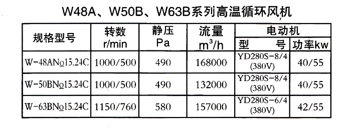 W48A、W50B、W63B系列高温轴流风机是用于各种有金色属的加热炉、均热炉、时效炉等热处理炉内气流强制循环,具有风量大、静压高、噪音低、运转安全可靠等特点,是各种有色金属热处理炉的关键设备,对提高热处理质量缩短热处理周期起着重要作用。 W63B系列可任意设定时间,定时正反转,交替工作,反风率达到90%,有笑的提高炉内温度场的均匀性及热处理质量,是目前炉用高温轴流风机的最佳和最新产品。 风机运行温度550℃,短时高温≤650℃。