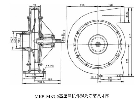 3.本风机使用于MK9和MK9-5,出厂时不装皮带轮,使用时可将原皮带轮装上,转